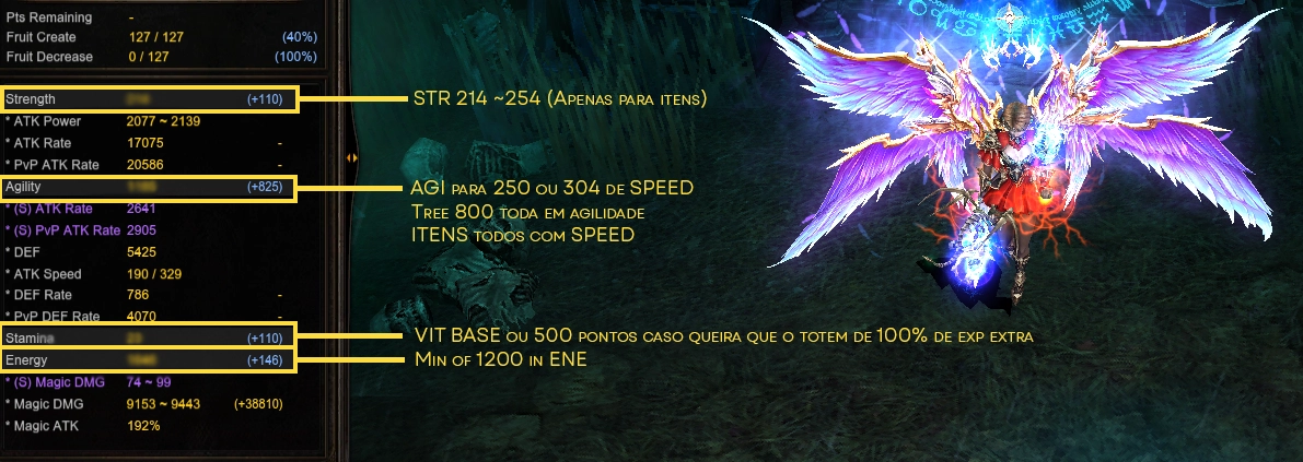 Na hora de montar sua alquimista PvM, foque em velocidade de ataque acima de tudo. Itens com Dexterity adicional ou Attack Speed são fundamentais para economizar pontos de agilidade. O foco é ter entre 214 e 250 em força, o mínimo possível em agilidade e o máximo possível em energia, mas, temos que lembrar dos breakpoints em agi, então de inicio, uns 800 a 1000 em agi deve bastar, depois tentamos reduzir. A tree do 800 é toda em AGI.